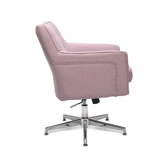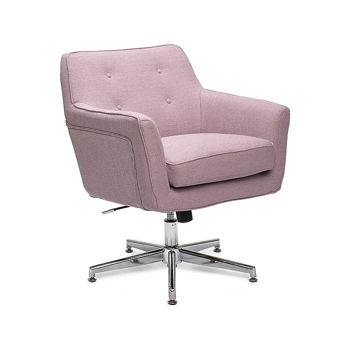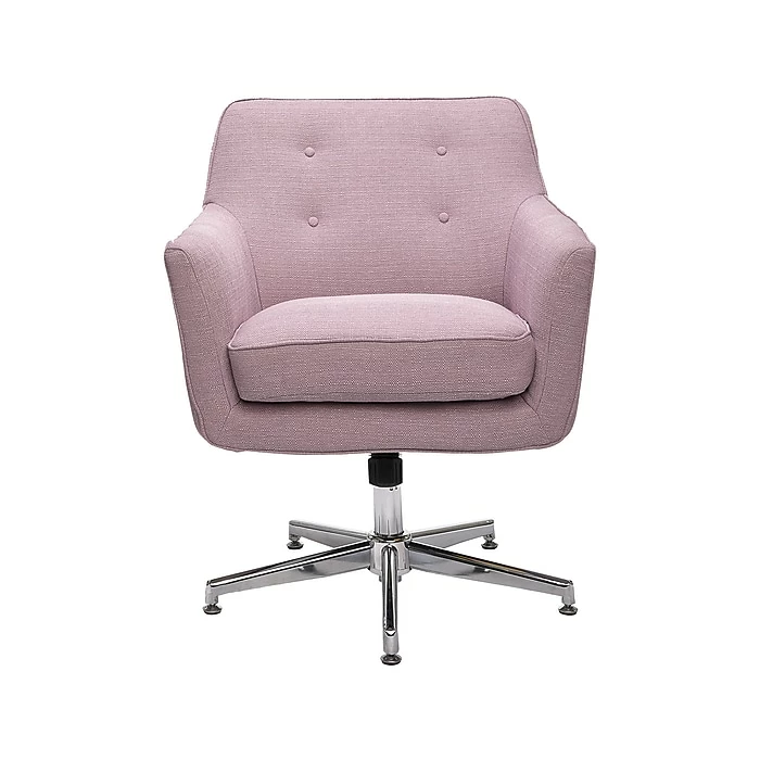 - Twill upholstery in lilac color; chrome-finished stainless steel base with casters offers 360-degree mobility