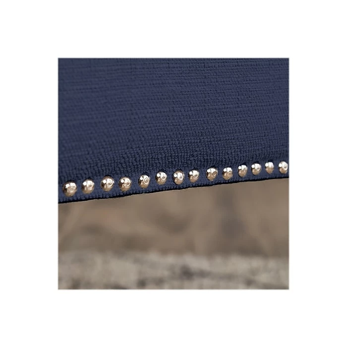 - Twill upholstery in blue; chrome-finished stainless steel base with casters offers 360-degree mobility