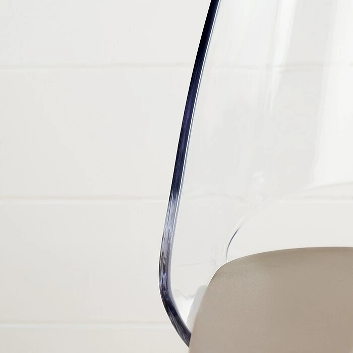 - Back of the chair is made of clear plastic and seat is made of grey plastic