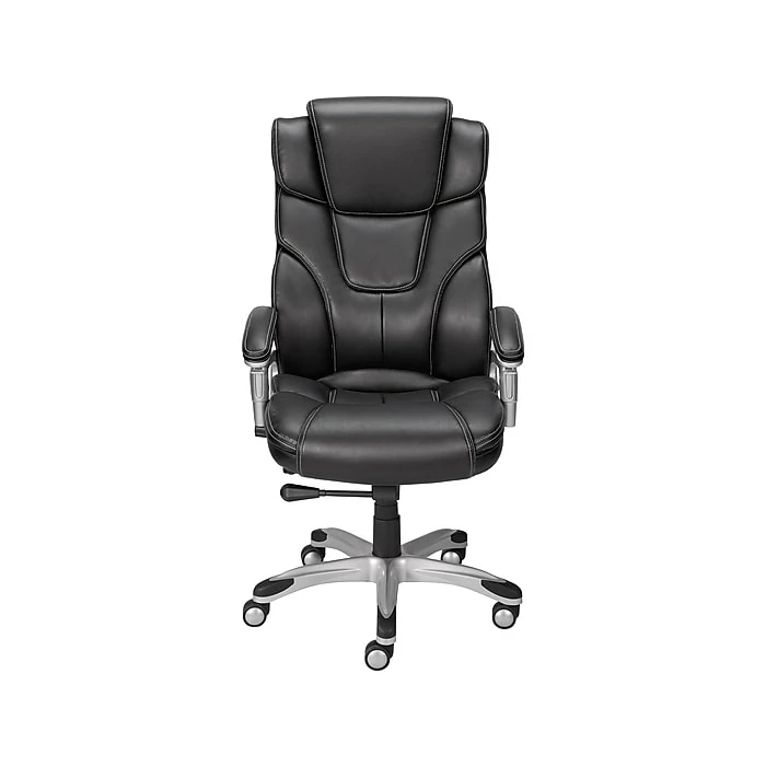 I bought the Staples Baird Bonded Leather Manager Chair for my office and I’m quite satisfied with it. The black finish gives it a professional look. The chair is comfortable, though I wish the padding was a bit thicker. The bonded leather seems to hold up well so far. The tilt and swivel functions are smooth, and the casters roll easily on my carpeted floor. It’s a solid choice for an office chair.