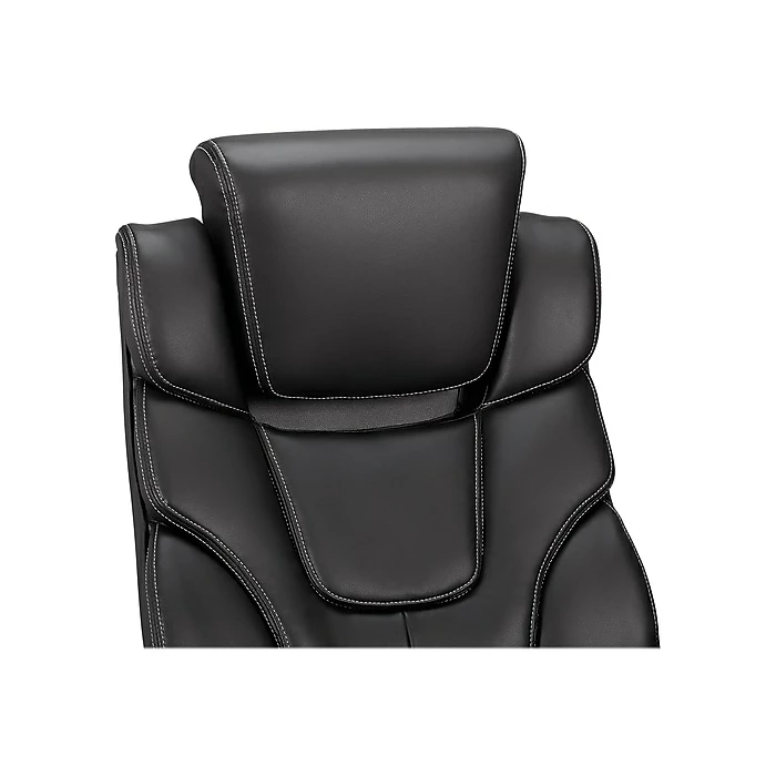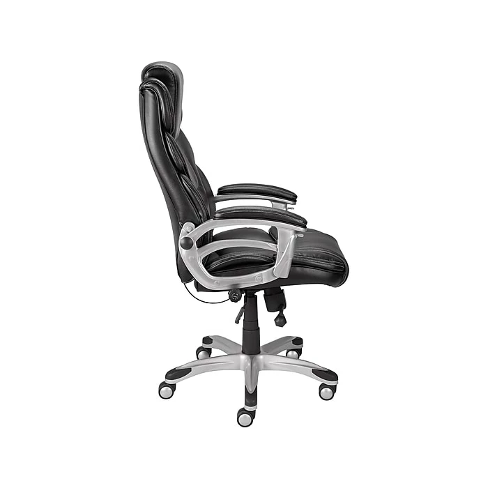 The Staples Baird Bonded Leather Manager Chair is incredibly comfortable and fits perfectly in my home office. The black color matches my desk setup, and the bonded leather feels durable. Highly recommend!