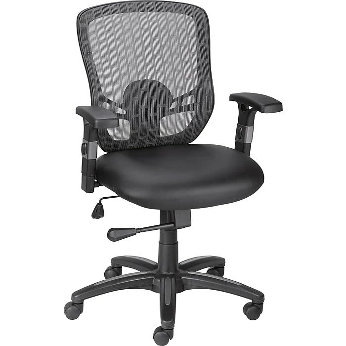 Sink into this Corvair Luxura mesh back task chair and enjoy added comfort throughout each workday. Designed with lumbar support, a pneumatic height adjustable seat, and adjustable tilt tension with tilt lock. The durable casters and nylon five-star base let you glide from computer to file cabinet and back again, making it easy to tackle everyday tasks without having to leave the comfort of this office chair. With adjustable padded arms, this black Corvair Luxura mesh back task chair is great addition to any work space.