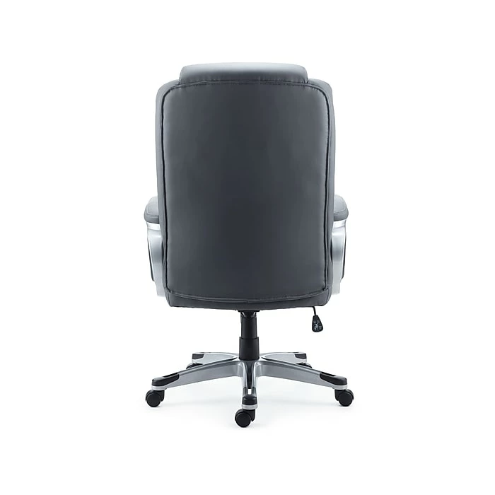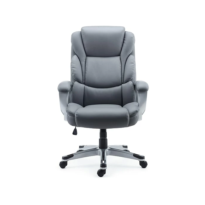 Create a plush seating configuration with this Mcallum managers chair. The soft bonded leather upholstery adds an inviting texture and high-end look for your executive office. With its high-back design, built-in lumbar support and contoured cushions, this chair provides maximum comfort. Fixed loop arms with padding give you a place to rest your hands in between typing out long reports and emails, while the built-in headrest lets you lean back for a quick break in the workday. Use the tilt tension and tilt lock to find a perfect angle of recline and engage the pneumatic seat height adjustment lever to move the seat up or down. With durable rolling casters, this Mcallum managers chair glides across your office floors.
