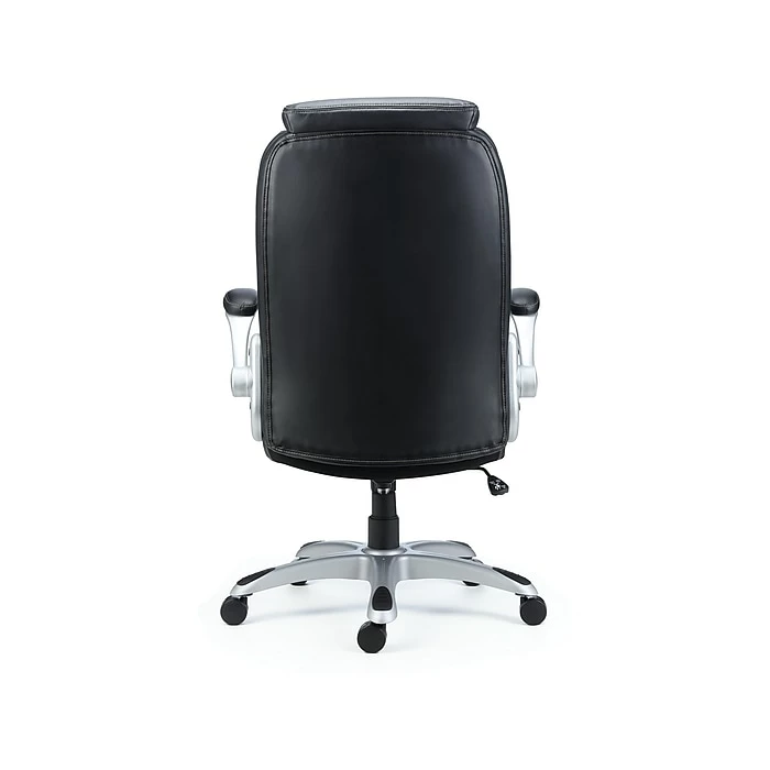 Outfit your executive office with this Sorina office chair. The soft quilted back and bonded leather accents deliver modern style, and the plush padding cradles your frame for all-day comfort. Built-in lumbar support and flip-up padded arms, making it easy to get in and out of the seat. Tilt tension, tilt lock and seat height adjustments provide convenient customization, so you can get the perfect fit for the busiest of workdays. Featuring a five-star base and sturdy rolling casters, this Sorina office chair glides effortlessly across office floors.