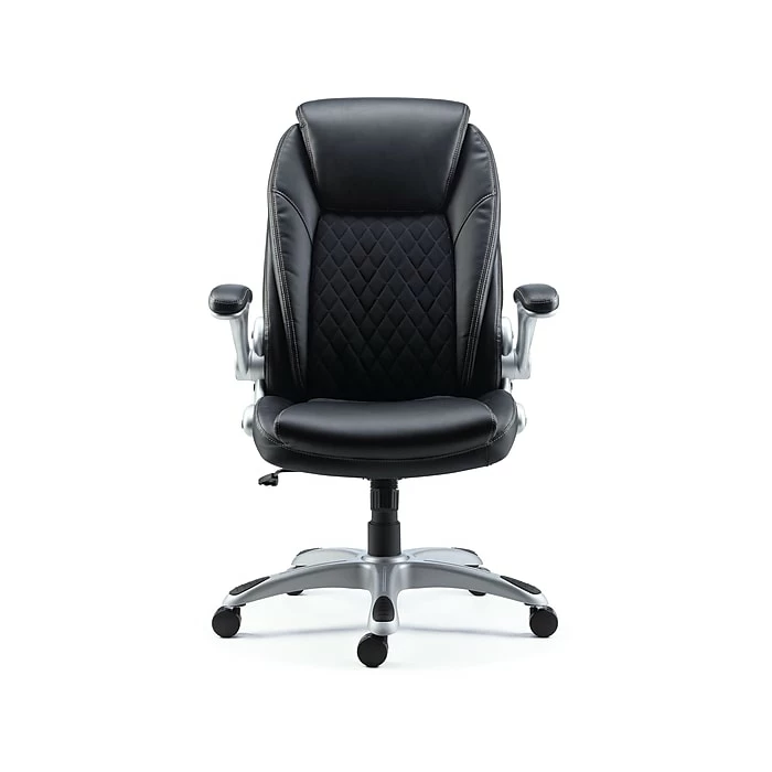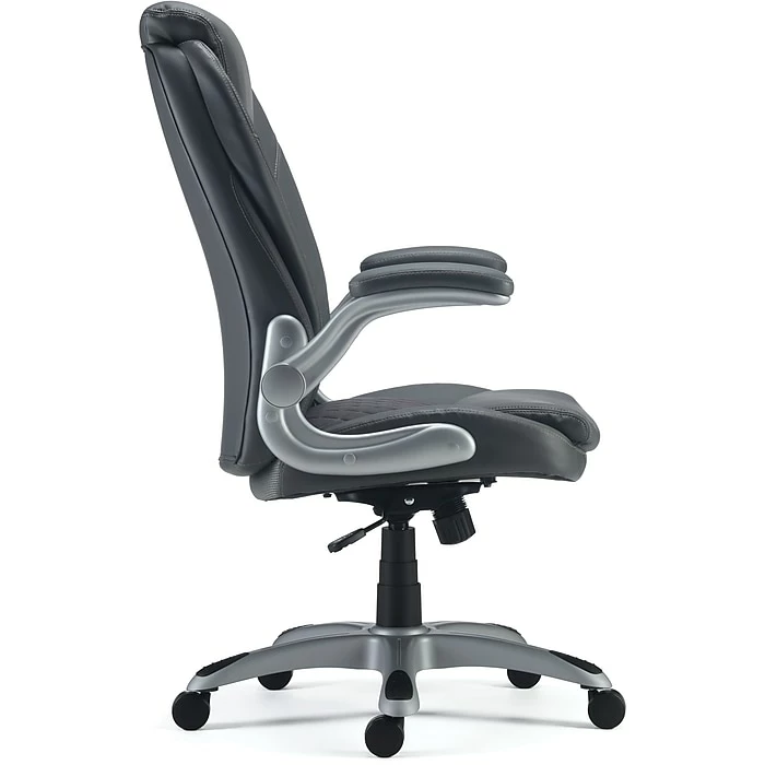 - Gray bonded leather and quilted fabric task chair for elevated comfort and style