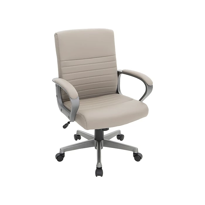 Stay comfortable while you work in this Tervinaâ„¢ black managers chair. Padded armrests provide added comfort, and built-in lumbar offers additional support. The soft upholstery looks and feels just like real leather for an elegant finishing touch. Use the pneumatic seat height adjustment and tilt tension to find then lock the perfect setup for your body.