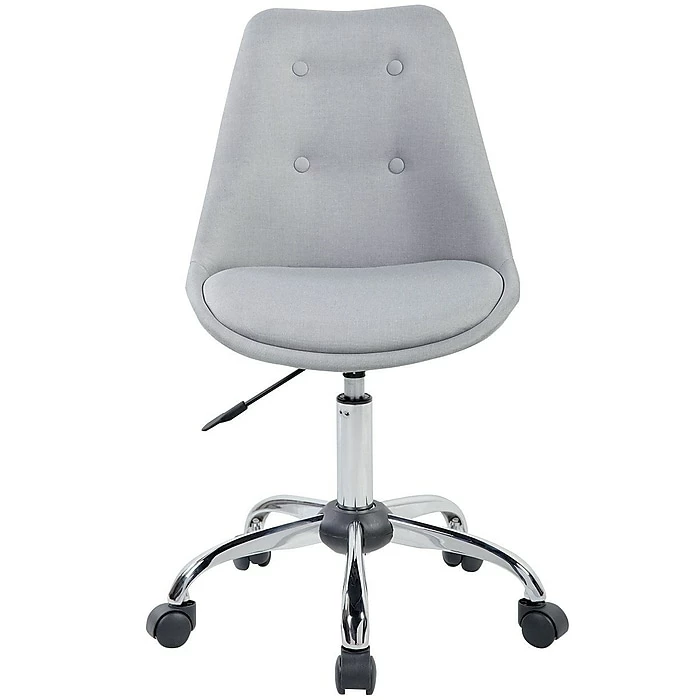 This Techni Mobili Armless Task Chair is simply elegant to the eye with it’s deep tufted buttons and design. It features a pneumatic seat height adjustment lever that provides a 5 inch range in seat height from 19″ to 24″ high.