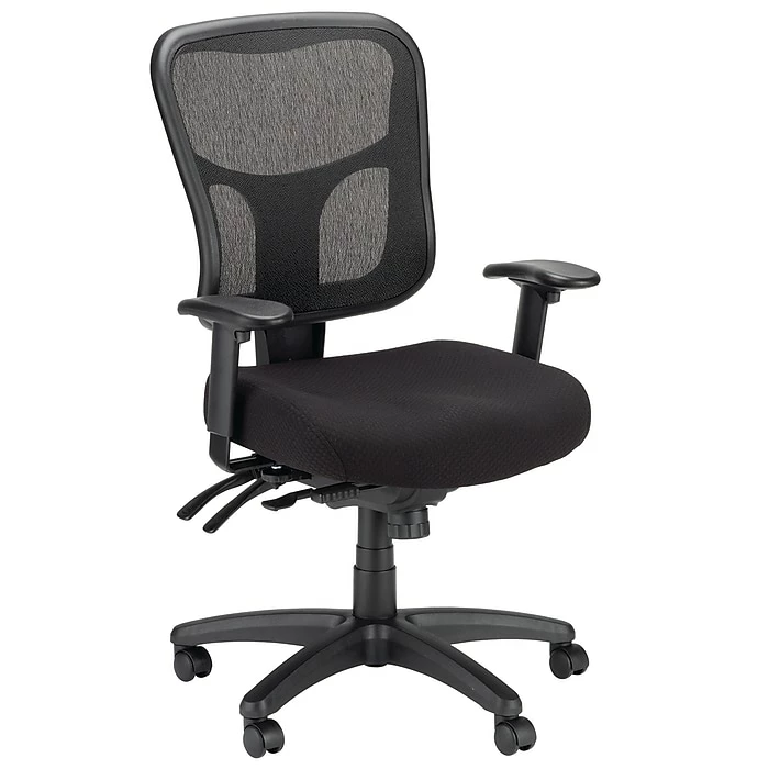 Create a more relaxing office environment with this Tempur-Pedic ergonomic mid-back office chair. Breathable mesh construction lets air circulate between you and the seat back, helping to keep you cooler as you work. The TEMPUR memory foam cushion offers added cushion and support for all-day use, while the built-in lumbar support provides relief for sore and strained muscles. With its five-star base and rolling casters, this desk chair moves easily from your workstation to file cabinets or printer stands. Use the adjustable arms to find the perfect height and width for your frame, and move the seat up and down using the pneumatic seat height adjustment lever. This Tempur-Pedic ergonomic mid-back office chair features center tilt, forward tilt and tilt lock, so you can recline comfortably in between projects.