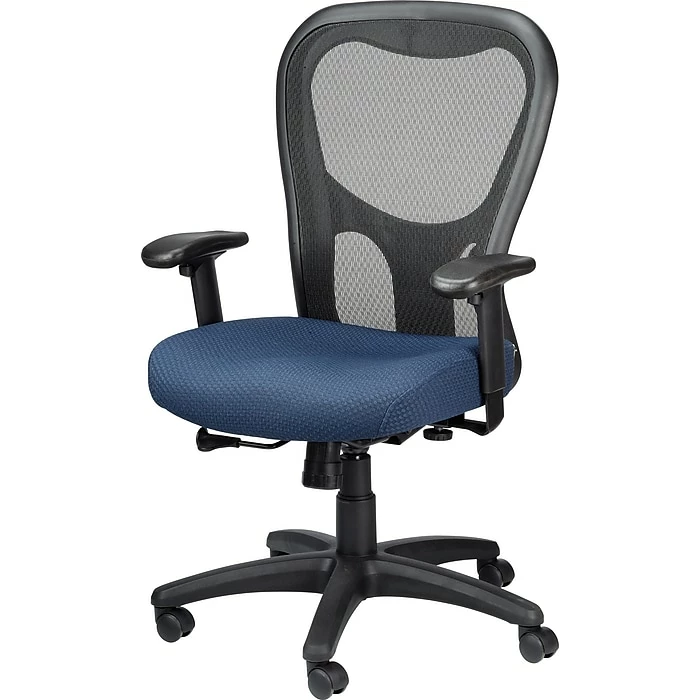Prepare for marathon work sessions with this navy blue TEMPUR-Pedic mid-back office chair. Soft, plush memory foam seat padding provides a more comfortable seating experience, cushioning your frame throughout the day. The built-in lumbar support works to promote better posture and relieve tired muscles, while the mesh back keeps you cooler as you tackle tough projects. This task chair features tilt tension and tilt lock control mechanisms, so you can recline between conference calls or remain upright when tasks require your full attention. With a handy seat height adjustment lever and adjustable armrests, this TEMPUR-Pedic mid-back office chair lets you create a custom seating configuration.