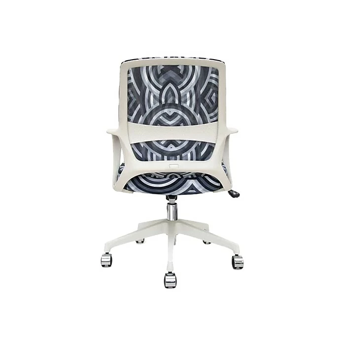 - Features a patented ESC fabric upholstery in a Grayscale Echo design and a white base with silver-tone accents